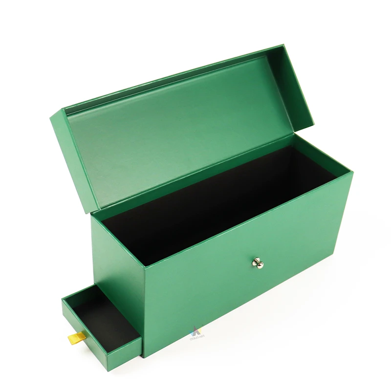 Showcase your wine with the elegance it deserves through Crown Win's custom wine boxes. Made from premium materials like kraft paper, greyboard, and coated paper, these boxes offer the perfect balance of durability and sophisticated design. Whether you need a rigid box for a high-end presentation or a sleek folding carton for a modern look, our packaging solutions are fully customizable to match your brand’s style. Add personalized touches such as embossing, foil stamping, and window cutouts to highlight your logo and create a memorable unboxing experience. Ideal for retail, gifting, or special events, our wine boxes provide both protection and a striking visual appeal that will set your product apart in the market.Customizable Creative Design Wine Packaging Box with Drawer Crown Win Packaging Factory